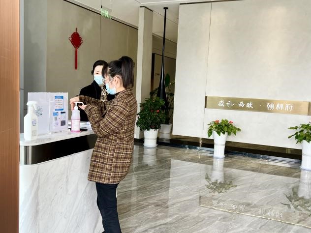 客戶到訪售樓處后,是開(kāi)展防疫工作的重點(diǎn)階段。翰林府項(xiàng)目嚴(yán)格從安全防護(hù)的角度出發(fā),嚴(yán)苛定制每一項(xiàng)接待流程,讓客戶安心。