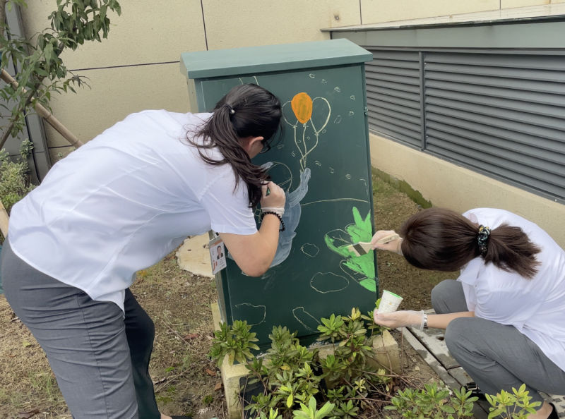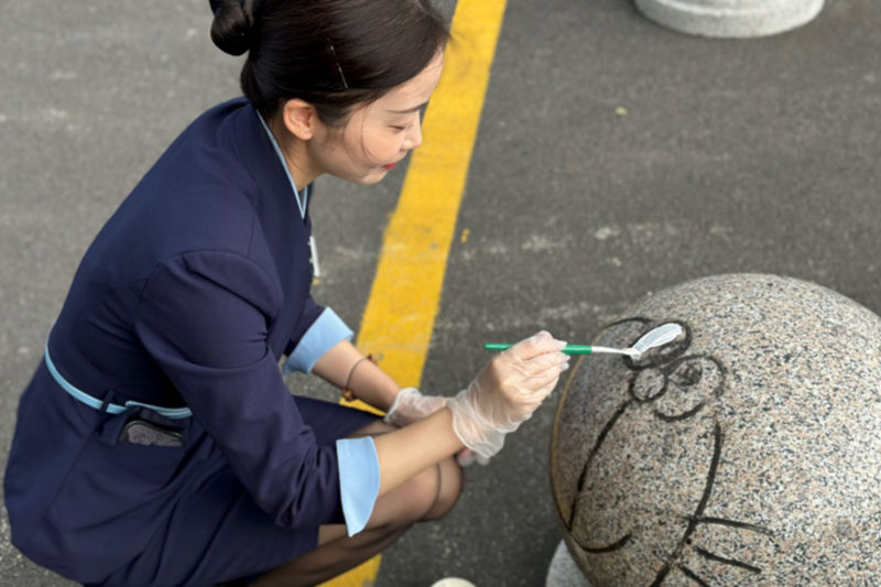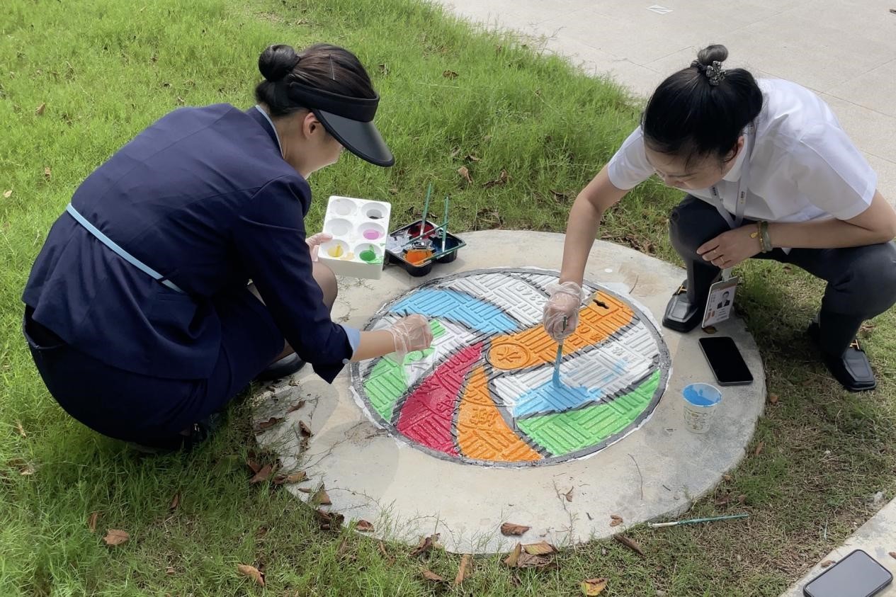 小區(qū)主出入口紅旗飄飄、配上“歡度佳節(jié)”的紅燈籠,濃濃的雙節(jié)氛圍在小區(qū)里渲染開來(lái)。悅家人化身“粉刷匠”妙手“粉刷”,他們掃去浮土、除去銹跡、勾勒輪廓、涂料應(yīng)用于輪廓之中,在業(yè)主們歸家的道路上、窨井蓋、沿途石球及配電箱刷上各種美好的色彩,一幅幅生動(dòng)有趣的畫面躍然而現(xiàn),配合上節(jié)日氛圍布置,給業(yè)主們煥然一新的視覺(jué)沖擊。